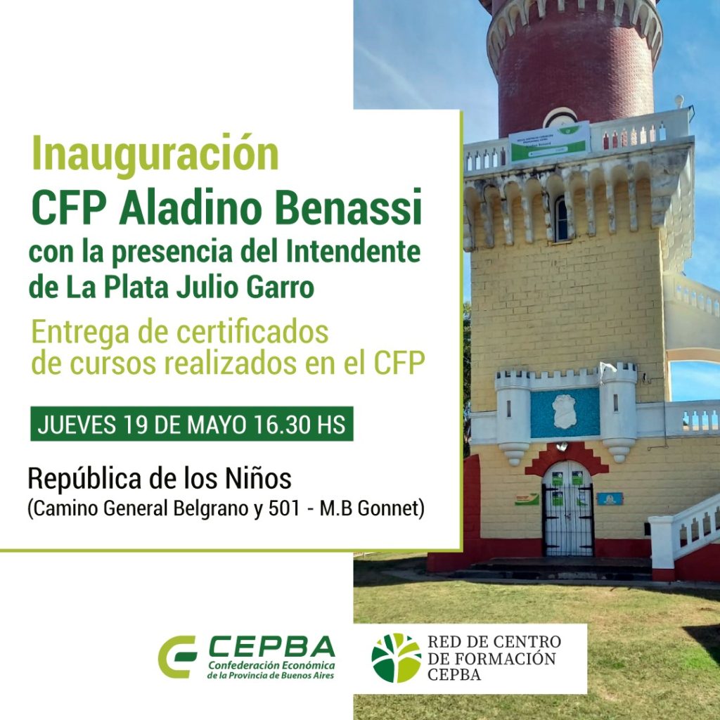 Inauguración CFP Aladino Benassi con la presencia del Intendente de la PlataEntrega de certificados de cursos realizados en el CFPJueves 19 de mayo 16:30 Hs en la República de los…