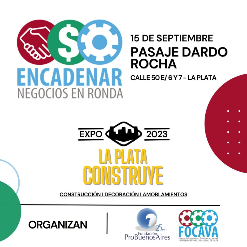 15 de Septiembre En La Plata Pasaje Dardo roche (Calle 50 E/6 y 7 – La Plata)EXPO 2023 La Plata Construye Construcción -Decoración – AmueblamientosInscripción en https://encadenar.com.ar/wp/alta-empresa/