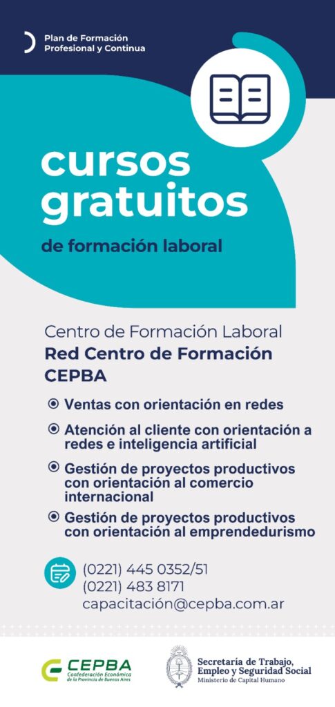 Centro de formación laboral Red Centro de Formación CEPBA-Ventas con orientación en redes.-Atención al cliente con orientación a redes e inteligencia artificial.-Gestión de proyectos productivos con orientación al comercio internacional-Gestión…