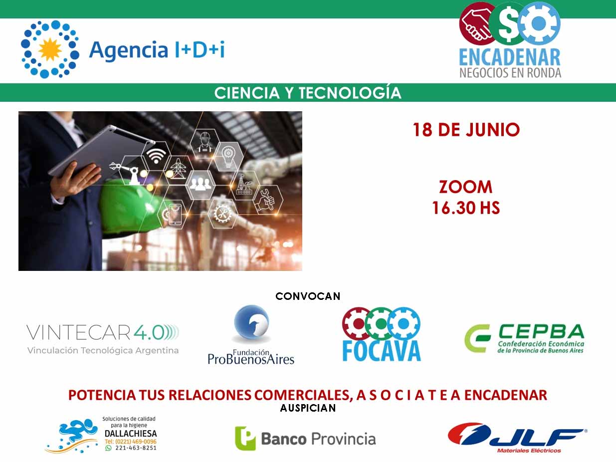 Encadenar, negocios en ronda, les trae un nuevo evento Ciencia y Tecnología, con el objetivo de vincularte con referentes del sector, por ello el 18 de Junio realizaremos un Zoom contando con la exposición del Lic. Fernando Peirano, representante de la Agencia I+D+i.
