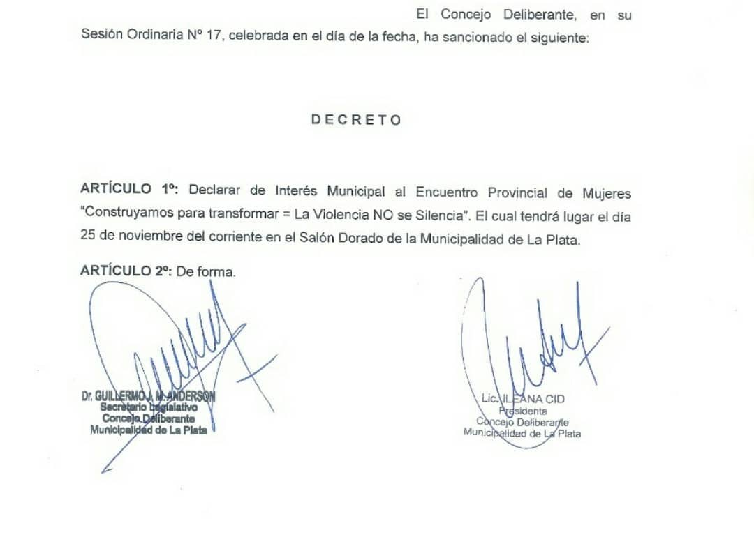 En nombre del #CentrodeFortalecimientoFamiliarJulietaLanteri, la Secretaría de la Mujer de la Confederación Económica de La Provincia de Buenos Aires, la Asociación Mundial de Escritores y Artistas del Orbe y Al Pie de la Letra agradecemos al Honorable Concejo Deliberante y a su presidenta Concejal Ileana Cid su participación y el Compromiso permanente por #GenerarConciencia ante algo tan significativo cómo #GenerarConciencia y declarar de Interés Municipal ésta jornada