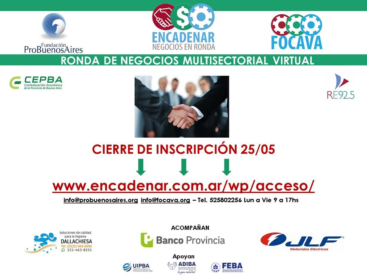 Coorganizado junto a Fundación Pro Buenos Aires los invitamos a participar de una nueva edición de #Encadenar, el evento se desarrollará de forma Multisectorial Virtual para que todas las #pymes participantes puedan encontrar nuevos vínculos comerciales, incrementando sus ventas y desarrollando proveedores.