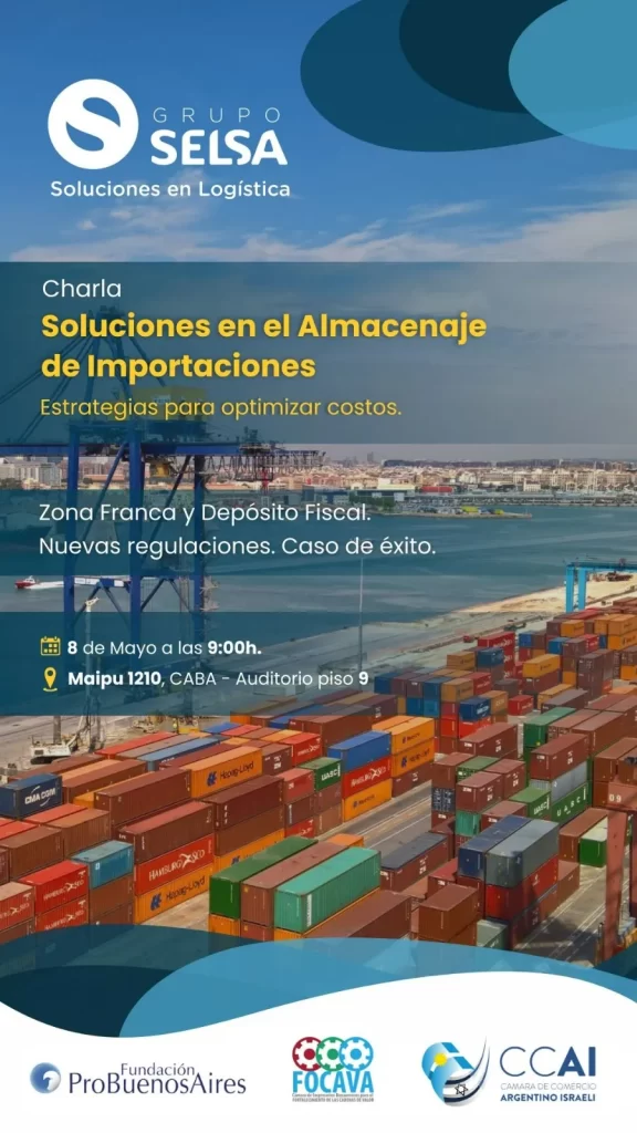La Camara de Empresarios Bonaerenses para el fortalecimiento de las cadenas de valor (FOCAVA), Fundación Pro Buenos Aires, en colaboración con Grupo Selsa, y la Cámara de Comercio Argentino-Israelí, tiene el placer de invitarles a un exclusivo desayuno sobre Importaciones y Almacenaje. Este evento se presenta como una valiosa oportunidad para explorar estrategias que optimicen sus operaciones de importación y gestión de costos.