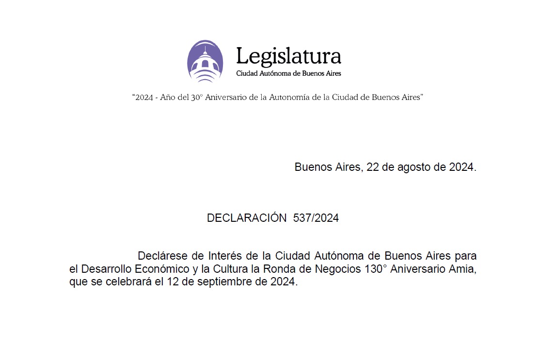 La Fundación Pro Buenos Aires se complace en anunciar que la Legislatura de la Ciudad de Buenos Aires ha declarado de interés cultural y para el desarrollo económico el evento Encadenar, Negocios en Ronda, que se llevará a cabo el 12 de septiembre en las instalaciones de AMIA. Esta actividad, que contará con la participación de 195 empresas, entre las que destaca Aconcagua Energía por su compromiso con el desarrollo de proveedores, marca un hito como la primera ronda de negocios realizada en el año del 130º aniversario de AMIA.